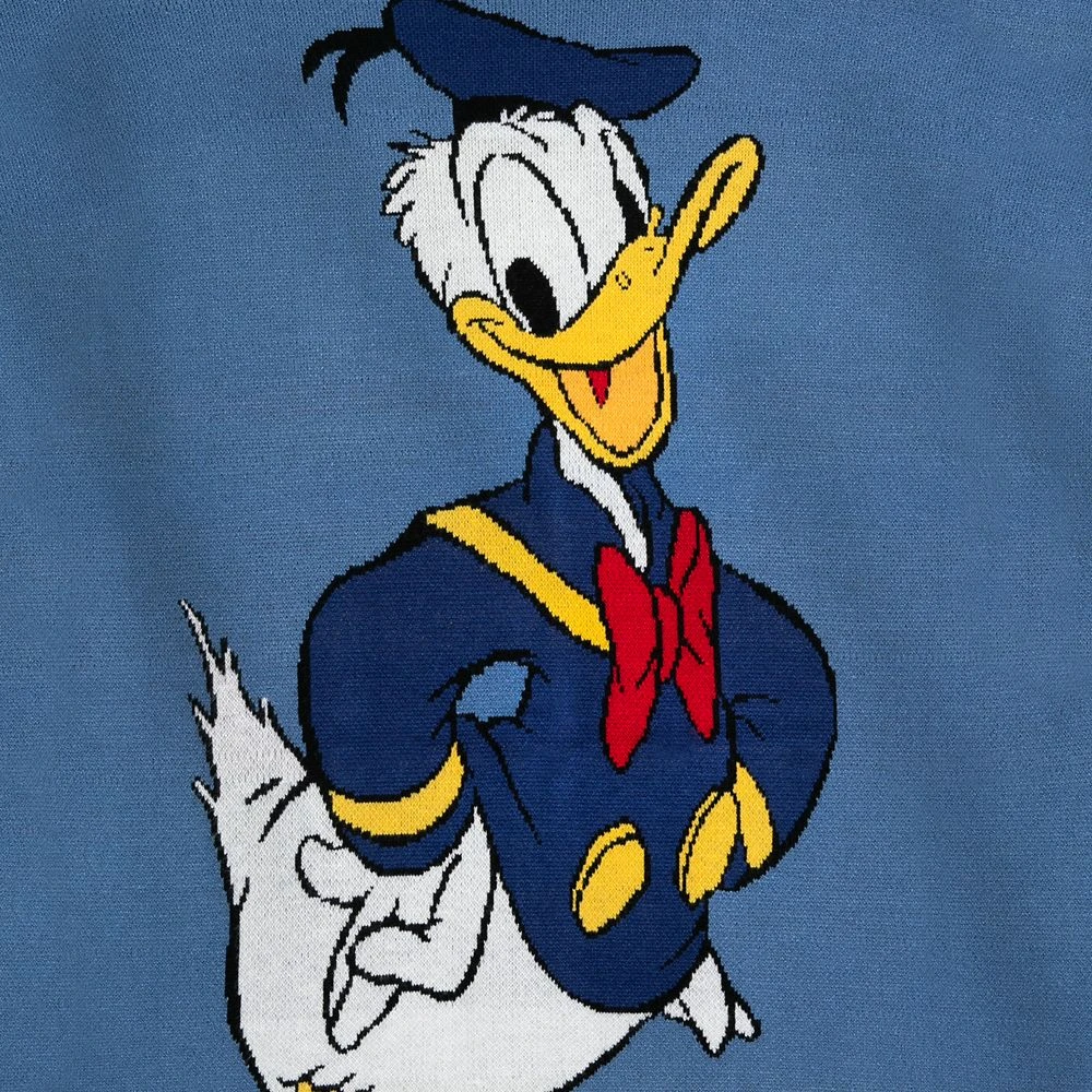 Birds of a feather stick together, especially when it’s the same bird. Donald Duck is featured twice on the front of this intarsia knit cardigan and once on the back. Created in celebration of the 90th anniversary of Mickey’s quack tempered friend, this retro-style cardigan will remain a timeless favorite.
