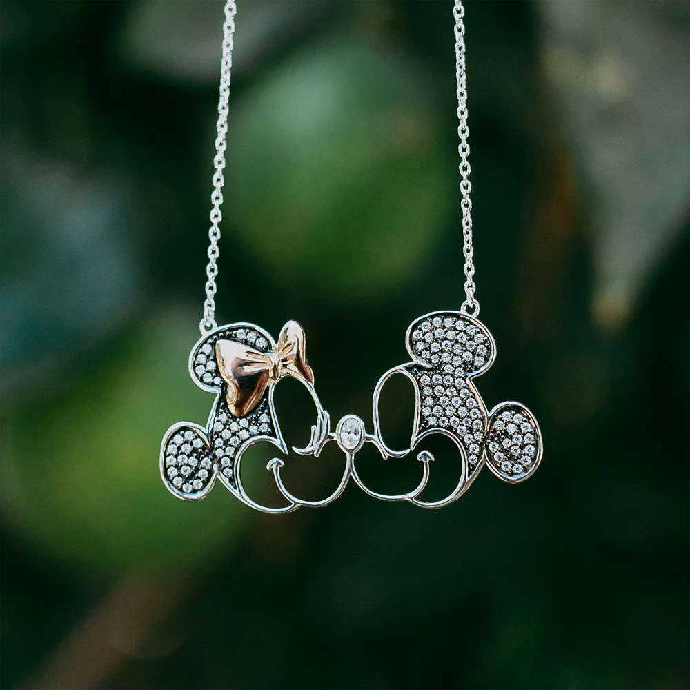 - Sterling silver Mickey and Minnie Mouse pendant on sterling silver chain