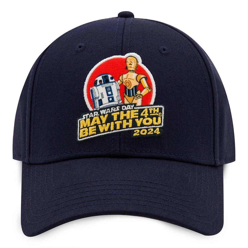Celebrate Star Wars Day with this stylish baseball hat. It features an embroidered appliqué patch with R2-D2, C-3PO and the ”Star Wars Day May the 4th Be with You 2024” logo on the bill, making it a choice fit for celebrators in every part of the galaxy.