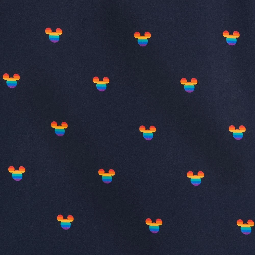 Show your true colors in this button front woven shirt with an allover print pattern featuring a rainbow striped Mickey Mouse icon. Classic styling is blended with a contemporary spirit on this casual and comfortable viscose shirt.