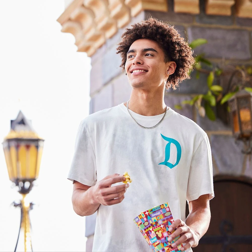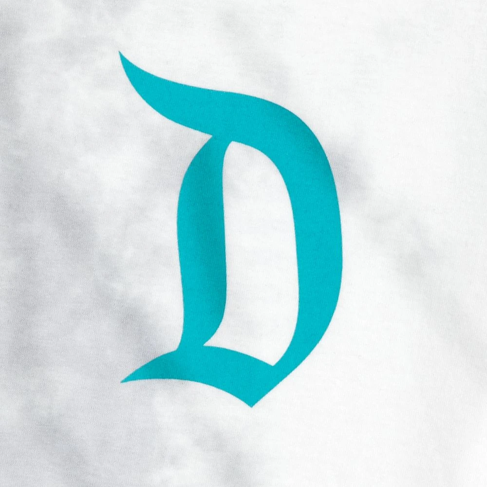 The back of this dreamy tie-dye t-shirt recounts Walt Disney’s Disneyland dedication speech from July 17, 1955, alongside a silhouette of the famous ”Partners” statue of Walt with Mickey Mouse. The gothic Disneyland ”D” is proudly displayed on the chest.